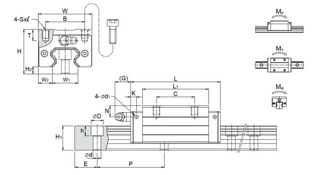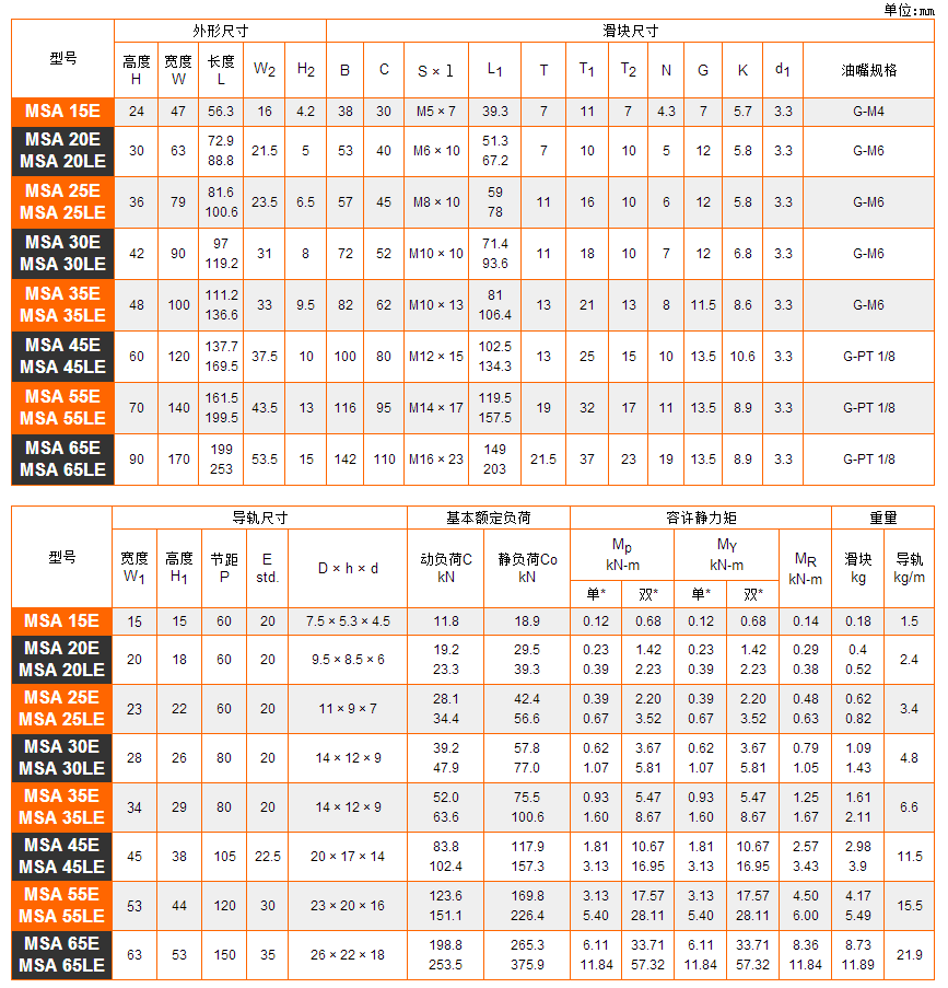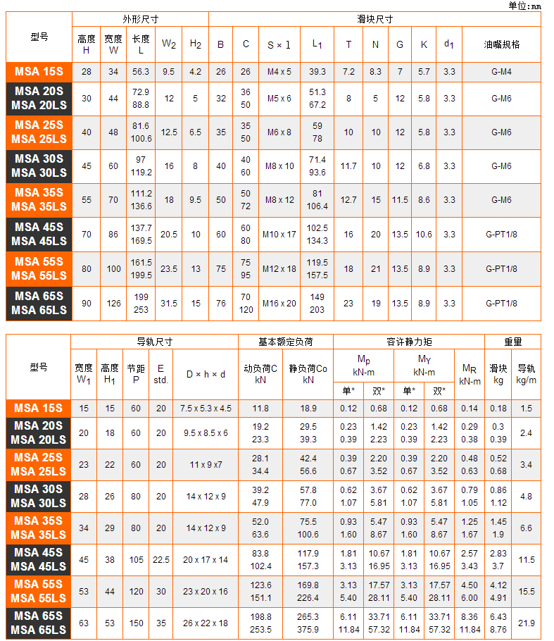 MSA系列直線導(dǎo)軌采用4列圓弧接觸式及45°觸角的 鋼珠列設(shè)計,提供徑向、反徑向及橫方向四方向的相同額定負(fù)荷能力,無論X、Y、Z等軸的各種安裝方式都可以使用,并且可在維持低摩擦阻力情況下均勻的施以 預(yù)壓,增強四個受力方向的剛性,特別適合高精度與高負(fù)荷的運動方式。